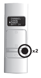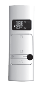 - On the remote, press and hold the menu/right button for about 2 seconds, until the remote screen displays the menu (CHANNEL, SHADE, ZWAVE)